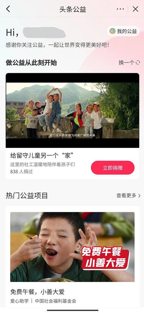 首先,我们来了解一下什么是头条公益。头条公益是今日头条旗下的一款公益平台,旨在通过互联网技术,让公益项目更加透明、高效,让更多人参与到公益活动中来。